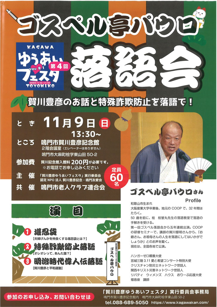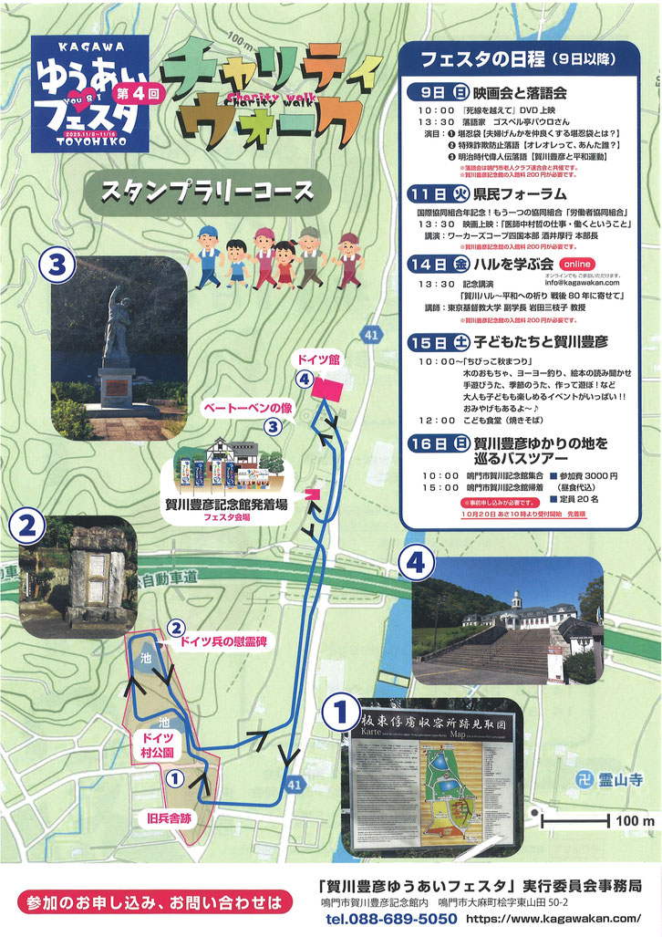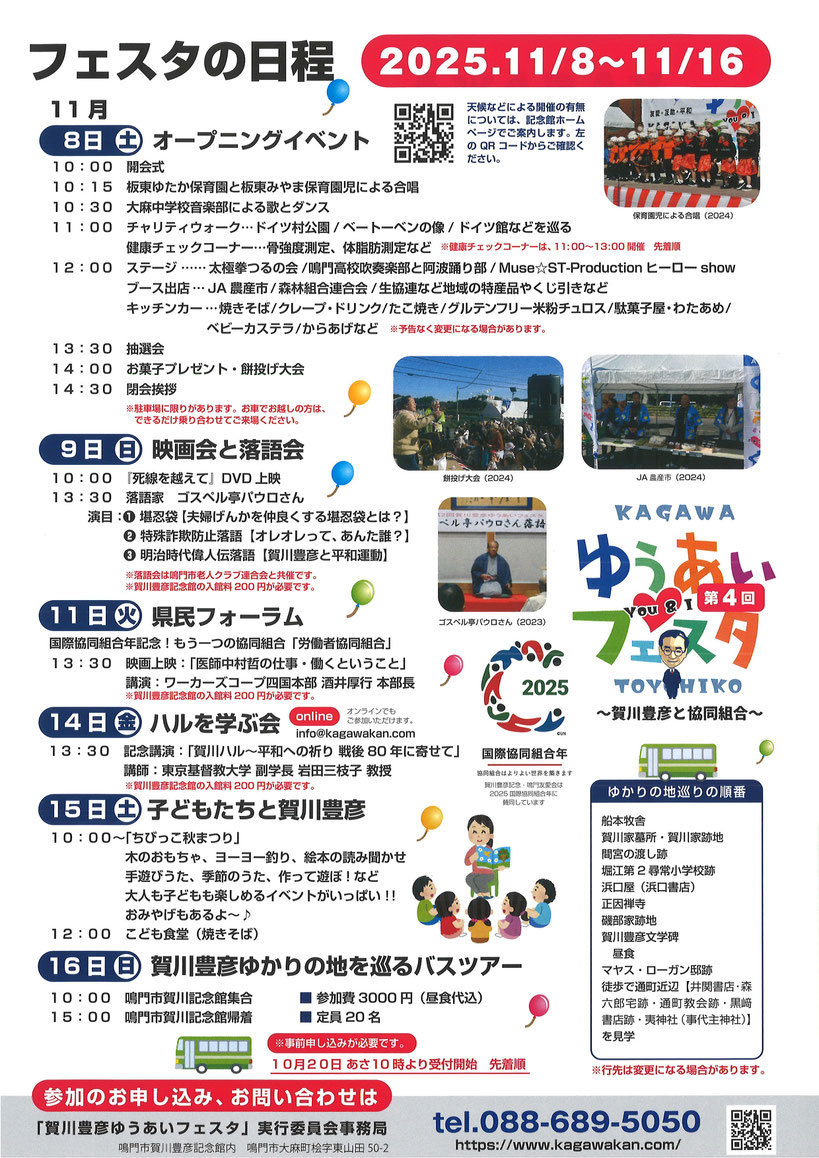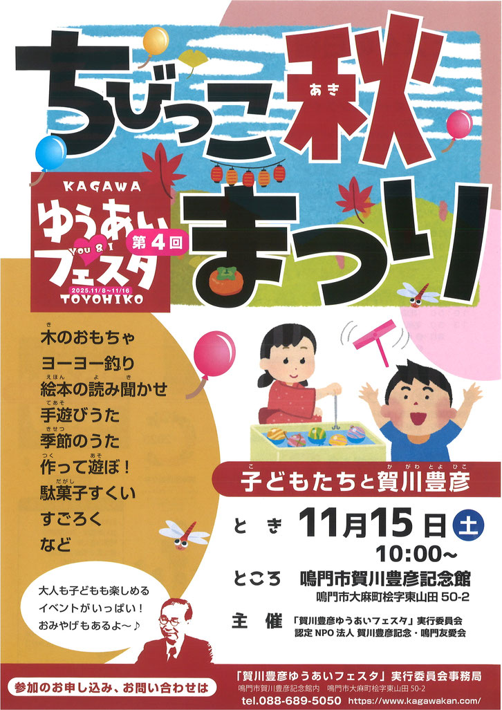 鳴門市賀川豊彦記念館は、賀川豊彦鳴門記念館設立を目指す会・賀川豊彦鳴門記念館建設実行委員会の活動により、3千人近くの方々のご寄付を頂いて、徳島県鳴門市大麻町に2002年春に完成し鳴門市へ寄贈されました。多くの方々のご支援を頂き、苦節6年の末の民間だけによる記念館の建設で、内外装とも豪華とはいえませんが、いわば手作りの温かみのある記念館であると自負し、ここに多大なご支援を頂きました皆様方に心より厚く感謝とお礼を申し上げ、またぜひ一度ご来館をお願い致します。